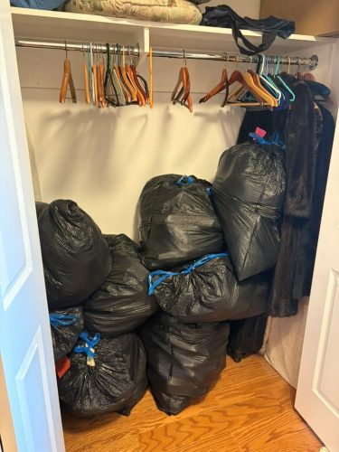 衣類だけでも大きなゴミ袋に28個あり、これらをGoodwillに持っていった。