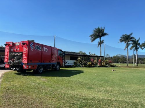 消防の会社がスポンサーだった週は、ティーグラウンドに消防車が鎮座