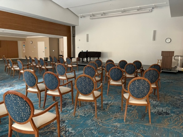 リタイアメントホームの集会会場にはグランドピアノもある。
