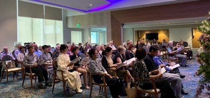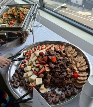 会の後、参加者は食事の場所に移動した。ビュッフェの食事だったが、どれも結構美味しく、参加してくださった方々もテーブルごとに会話が弾み良い会の締めくくりとなった。