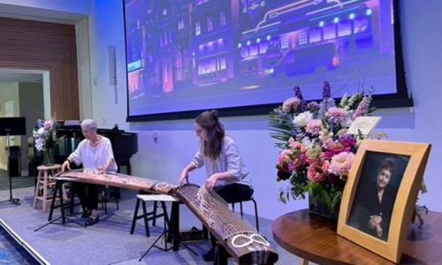 最後のスピーチが終わったあと、日本に住んだことがあり、何度か日本を訪れた義母の送別に相応しいお琴の演奏が会場を満たした。